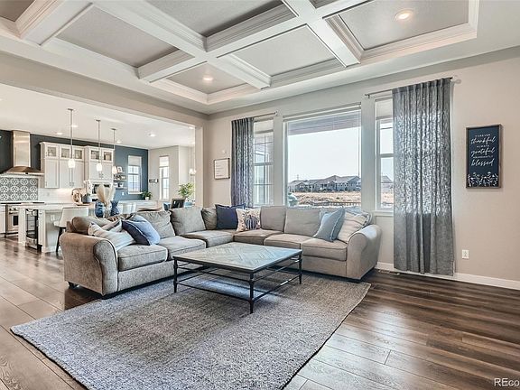 You will love the morning sunrises over the open space backyard! Please review the home walk through video:https://cdn.virtuance.com/v_residential/660140/videos/7759_River_Piney_Ave.mp4. This beautiful home provides luxury living w/practicality, technologically friendly, & beautiful surroundings, making it the truly premium lot of the neighborhood. The open floor plan offers a vast great room w/tall, coffered ceiling, wide plank engineered hardwood floors, custom built shelves/cabinets, and surrounded by light-filled rooms.  The high-end kitchen offers quartz countertops w/an oversized island, farmhouse sink, large refrigerator, double oven, 2 dishwashers, wine chiller, Monogram appliances, & a spacious pantry.  Premium main floor living w/the primary bedroom/bathroom w/elegant tub on the first floor & massive primary walk-in closet located conveniently adjacent to the laundry room. Next is the generous, extended, partially covered deck overlooking the expansive open space & breathtaking mountain views. In addition, there is a professionally landscaped backyard w/a gas firepit and garden. Rare walkout basement provides a second living space that can truly feel independent from the main level w/a kitchen/bar area equipped w/refrigerator, dishwasher, microwave & sink. There is also a second laundry room, massive bedroom w/walk-in closet with bathroom, a 2nd basement bedroom & bathroom.  This truly lives like a second home w/a separately keyed entrance for the long-term guest/family. W/the enormous basement storage area & oversized garages (two and one car) w/custom built shelving & electric car charging stations in each garage, and storage is not an issue. The home will amaze you with the Seller OWNED solar panels, landscaping, alarm, extended deck, electric awning, jacuzzi, two built-in bar BBQs (traditional and green egg), gas firepit, & heated front entry. Enjoy the community coffee shop, sports courts, pool, clubhouse & rec center!