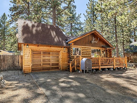 Nestled amidst the picturesque landscapes of Tahoe, this exceptional log cabin is meticulously hand crafted throughout. This residence exudes rustic charm and unparalleled character, making it an ideal retreat for mountain lovers or a perfect forever home.Positioned in a prime location of Al Tahoe, the cabin is just a stone's throw from Regan Beach, allowing you to fully take advantage of all that Lake Tahoe has to offer whether it's hiking, skiing, or simply enjoying the natural beauty that surrounds you.The cabin features two bedrooms, one bathroom, an attached garage for one vehicle, with additional bonus area above garage, complemented by a detached two-car garage, providing ample storage and space for all your outdoor equipment and recreational toys. This thoughtful layout ensures you have plenty of room to accommodate your adventurous lifestyle.From the welcoming front porch adorned with charming wooden accents and vintage wagon wheels to the cozy interiors that reflect the enchanting spirit of the mountains, this log cabin is more than just a home; it's a sanctuary where lasting memories can be created. With its blend of convenience and charm, this cabin is a rare gem waiting to be cherished.