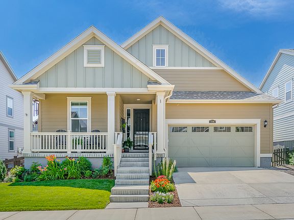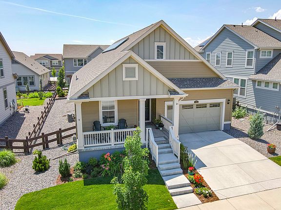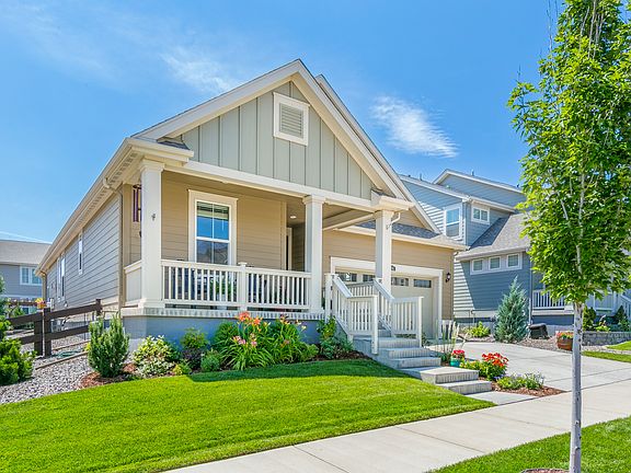 Stunning ranch home in Compass Erie neighborhood, this home is adjacent to the park and the bocce courts, w/ partial mountain views. Upon entry find the custom hallway ceiling w/veneer accents & pendant lighting. The cook's kitchen features an abundance of counter and cabinet space, white cabinets, granite counters, stainless steel appliances and a walk-in pantry. The adjacent dining area is large and walks out to the covered deck that extends to a stamped concrete patio w/landscaping to include evergreens and perennials, move in and enjoy the summer nights. The spacious great room provides great natural lighting and a gas fireplace. The elegant owner's suite features a large bedroom, and a spa-like 5 piece private bath with ceramic tile flooring, and a walk-in closet. 2 additional Bedrooms which offer ample closet space. A full bathroom, and a main floor laundry w/custom barn door and mudroom complete the main level. Basement is unfinished and offers great expansion opportunities.