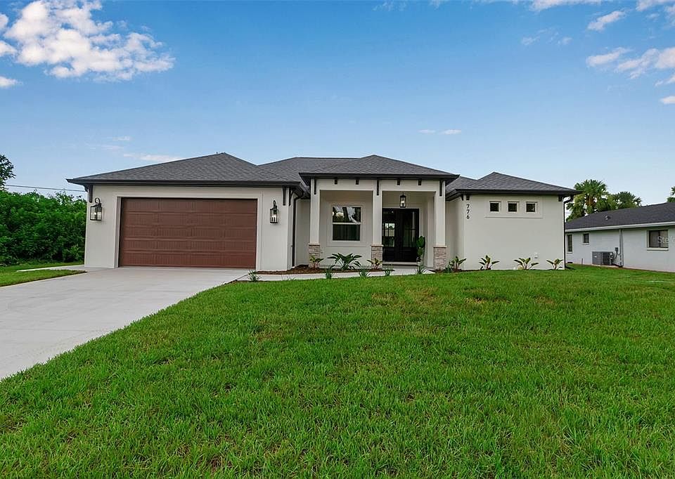 Welcome to one of Blue Water Custom Homes’ latest masterpieces, perfectly capturing modern coastal elegance with timeless charm. This beautifully designed Costa model features 3 bedrooms, 2 bathrooms, a versatile den, and a spacious 2-car garage, all thoughtfully crafted to provide a luxurious yet comfortable living experience in the highly sought-after South Venice community. From the moment you arrive, this home impresses with its crisp coastal-inspired façade featuring clean architectural lines and a beautifully paved driveway. The covered front porch provides a warm and welcoming entrance, while the professionally landscaped yard with lush, low-maintenance greenery enhances curb appeal. At the rear, oversized sliding glass doors open to an expansive lanai, seamlessly connecting indoor and outdoor living spaces—perfect for entertaining, relaxing, or enjoying Florida’s sunshine year-round. Practical details like integrated rain gutters and durable roofing ensure functionality alongside style. Step inside to a bright, open-concept floor plan anchored by soaring 9’4” ceilings with tray accents in the great room, primary bedroom, and den—adding refined architectural interest throughout the home. The flooring is a sophisticated combination of luxury vinyl plank and porcelain tile, chosen for both style and durability to suit everyday living and the coastal climate. The gourmet kitchen features warm wood-tone cabinetry paired with sleek quartz countertops, creating a clean and elegant workspace. Pendant lighting gracefully hangs over the large center island, providing both task lighting and a stylish focal point. A built-in coffee bar adds a functional and inviting touch to the space. High-end hardware and stainless steel appliances—including a built-in oven and range hood—complete this functional and beautiful culinary area. The den is a distinct, versatile room featuring double doors and a stylish hanging pendant light, offering an ideal space for a home office, study, or quiet retreat. The mudroom/drop zone and spacious laundry room include ample cabinetry for organization and storage, keeping daily routines efficient and clutter-free. The primary bathroom is designed as a tranquil retreat, featuring dual quartz-topped vanities, a freestanding soaking tub, and a generously sized glass walk-in shower with elegant tile surrounds. Dual walk-in closets provide abundant storage and convenience. The guest bathroom mirrors this attention to detail with coordinating cabinetry, sleek countertops, and plush tile flooring, ensuring comfort and style for family and guests alike. Situated in the highly sought-after South Venice area, this residence offers not just a home but a vibrant lifestyle. Enjoy NO mandatory HOA or CDD fees and peace of mind knowing the home is NOT in a hazardous flood zone. Members of the South Venice Civic Association benefit from exclusive access to the South Venice Beach ferry, private beach, and community boat ramp. Additionally, nearby Venice Gardens provides an Olympic-sized swimming pool available to South Venice residents. The location offers easy access to Shamrock Park, the Venetian Way bike trail, and a variety of shopping and dining options. At Blue Water Custom Homes, your investment is protected through our partnership with the nationally recognized 2-10 Home Buyers Warranty program. Schedule your private showing and make this exceptional Costa model your new home in South Venice!