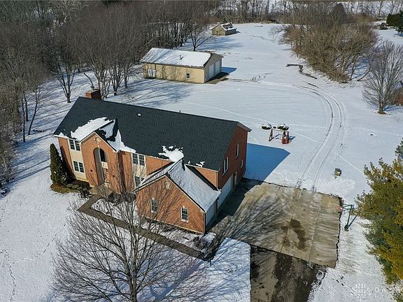 This Springboro home is situated on OVER 3 ACRES and complete with 4 bedrooms, a 40x60 pole barn, and TONS of updates! This home is as move in ready as they come! Recent updates include new house roof (2025), updated light fixtures throughout (2025), both full bathrooms remodeled (2022), fresh interior paint and upgraded switches and outlets (2020), updated kitchen and hardwood floors throughout first floor (2017), replacement windows throughout the house (2014), new geothermal HVAC (2013), barn roof (2009), and more. The soaring two story entry welcomes you into the home with front formal dining and living rooms. The updated kitchen features stainless steel appliances, under cabinet lighting, and updated countertops. Spacious adjacent great room with a cozy fireplace. Updated half bath and laundry room also on the first floor. The upstairs primary suite boasts soaring vaulted ceilings, and a private balcony/deck and STUNNING updated ensuite bathroom. Featuring chevron tile flooring, stand alone tub, walk in tile shower and double sink vanity. Large walk in closet. 3 additional upstairs bedrooms and updated full hall bath with double vanity. Convenient upstairs rec/family room - or possible fifth bedroom! Potential for even more finished space offered by the full basement. 3 car side entry attached garage PLUS endless garage/workshop/flex space offered by the 40x60 pole barn. Two oversized garage doors and a convenient smaller utility garage door on the side. This home includes two parcels totaling over 3 acres! MUST SEE!