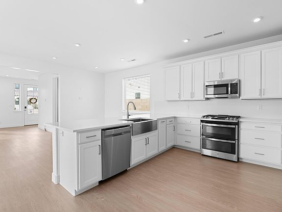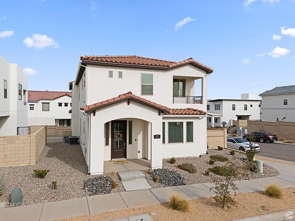 Located on corner-lot in Desert Color, this upgraded modern Spanish resort home offers - Smart home technology - bidet toilets - EV charger - Oversized 2 car epoxy garage - Concrete golf cart pad - 2 balconies - Permanent holiday lighting - 2 x 6 exterior walls - 10'ceilings, ... and so much more. The kitchen offers an industrial ice maker, and a built-in water station. All bedrooms are spacious with walk-in closets. The back patio is plumbed for gas and wired for speakers. All this with access to the 2.5 acre Lagoon and 2 (soon to be 3) community pools!