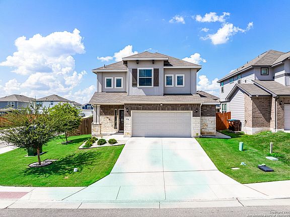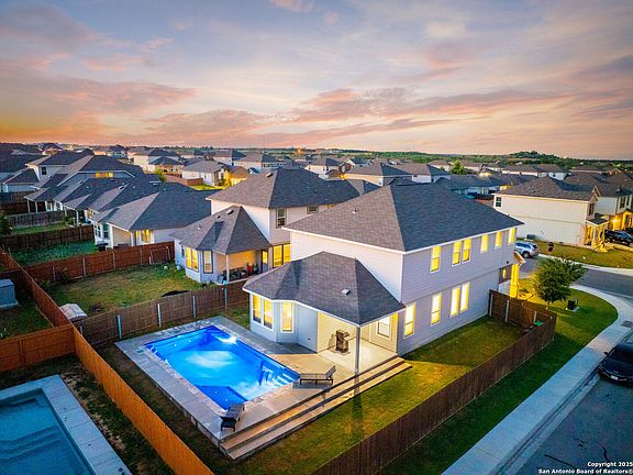 This rare 5-bedroom, 3.5-bathroom home offers the perfect blend of style, comfort, and convenience-all with an attractive super low tax rate. Situated on a corner lot, the exterior shines with a beautiful stone and brick elevation and meticulous landscaping that enhances its curb appeal. Step inside to find a custom modern color palette, open-concept layout, and thoughtfully designed spaces including a cozy electric fireplace in the living room, dual master closets, oversized pantry, and a secondary upstairs living area ideal for a media room, game space, or lounge. The backyard is an entertainer's dream with a sparkling saltwater pool, pristine yard, and plenty of room to relax and enjoy. If you need even more room, the garage has a bump out half car garage for additional space. Don't wait around on this one!