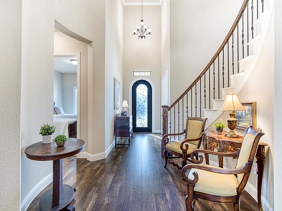 Experience refined elegance in this gorgeous home adjacent to a serene greenbelt & conveniently located by Pioneer Heritage Middle School & a short walk to JR Newman Park. The beautiful brick & stone exterior & wooden garage doors set the stage for the luxurious interiors within. Step into a thoughtfully designed floor plan where timeless craftsmanship meets comfort & beauty. Warm hardwood floors, decorative lighting, plantation shutters, soaring ceilings & an open floor plan define the main level. The gourmet kitchen is the heart of the home featuring KitchenAid double ovens, microwave, dishwasher & 6 burner gas cooktop, granite counters, oversized island with farm sink, beautiful cabinetry & large walk-in pantry. Don’t miss the pull out corbels with hidden space racks flanking the vent hood - it’s every chef’s dream kitchen. The expansive family room showcases picture windows & floor-to-ceiling stone fireplace seamlessly opening into the kitchen & formal dining room. It’s the ideal floor plan for entertaining & enjoying family gatherings. A private study with French doors offers a sophisticated workspace. The serene primary suite provides a peaceful retreat with a luxurious en-suite bath with a garden tub, spacious frameless shower & dual closets leading to the oversized laundry room. A guest suite with private bathroom, a mud room with built-ins & a half bath complete the main floor. Upstairs offers a generous game room with 2 fans plus two bedrooms sharing a Jack & Jill bath plus another bedroom & full bath. Extend your entertaining space on the sizeable covered back patio. You’ll appreciate the energy efficient vinyl windows & tankless water heater, plus a 3 car tandem garage with insulated doors. Residents enjoy a clubhouse, fitness center, restore style pool, junior olympic pool, splash pads, playgrounds, bocce ball, walking trails, volleyball, fishing ponds & events. HOA maintains front yard & alarm. Welcome home!