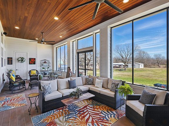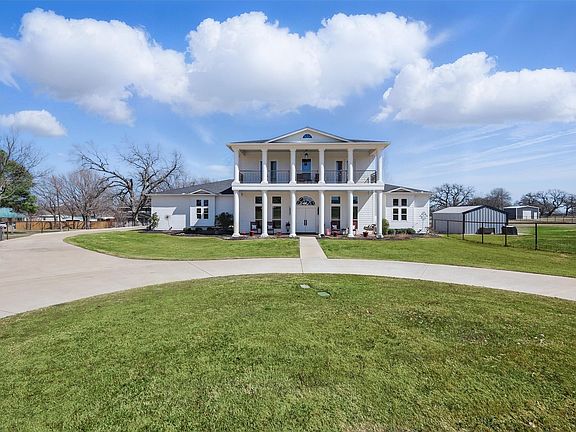 Custom Southern Manor on 1.5 acres on unincorporated land in Tarrant County. Space large enough for horses & small enough for easy maintenance. First floor ceilings are 12 feet tall & ceramic wood look tile throughout from the front porch to the back screened in porch. Open floor plan features a gourmet kitchen with oversized island, 6 burner range with double ovens, custom cabinetry, built in refrigerator & hidden coffee machine space with direct plumb line so no more refilling the machine! There is a back kitchen complete with a Butler’s pantry, sink with disposal, dishwasher & room for extra refrigerator-freezer. The living room is grounded by a 60 in fireplace of granite & onyx flanked by custom cabinets. The screened in porch is a view to behold from the living area. It has a stone fireplace extending 12 ft tall. Large formal dining easily fits a table for 12. Custom bar with onyx under lit lighting, 157 bottle wine fridge, ice maker, beverage fridge & sink. The primary bedroom is very spacious, with a wall of windows overlooking the back yard. The bedroom's double-sided fireplace is open to the luxurious bathroom that features a soaking tub, shower with multiple jets, double vanities, heated floors & 2 closets that connect to the laundry room. The second floor includes 3 gracious bedrooms each with own bath plus media room with bar, beverage fridge, sink & icemaker. The 4-car garage has a walk-up staircase to the attic, built in work bench & electric lift system to the attic. The backyard is fully fenced & gated & includes a separate storage building with own eclectic meter & half bath. This home also has an elevator shaft ready for future elevator, tankless water heater, whole house water filtration-softener system & 3 AC units. Located in the highly sought after Mansfield Independent School district, the elementary school is a quarter mile away. This sprawling estate is the perfect blend of country living with close access to the city!