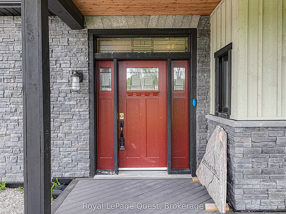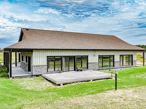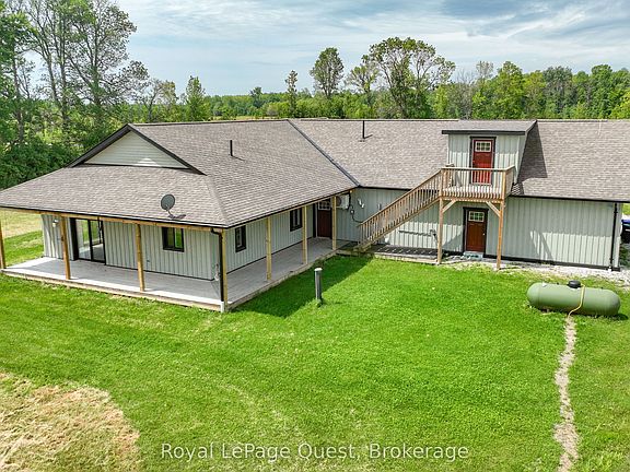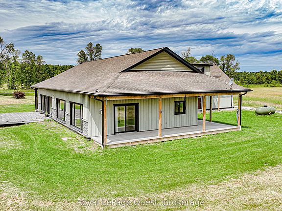 Did your power go out during the Ice Storm this winter? Were you left in the dark and cold for a week? Did your basement flood leaving you to deal with insurance? Would your life be better if you never had to worry about power outages or floods again? LOOK NO FURTHER! Discover the perfect blend of eco-friendly living and modern comfort in this beautifully designed off-grid home. Powered by a solar system and backed by a propane generator, this home offers true independence from traditional utilities. Nestled on a serene 2-acre lot, surrounded by 100 acres of pristine farmland, this property provides a rare opportunity for sustainable living with stunning views and unparalleled privacy. Key features include: 3 Bedrooms, 2.5 Bathrooms that are spacious and thoughtfully designed with plenty of room for family and guests. Enjoy the luxury of heated floors throughout the home, keeping you warm and comfortable in every season. This is a custom-built, energy efficient solar home that harnesses the natural power of the sun to reduce your energy footprint. Specially designed windows and blinds work together to trap solar warmth in the winter, making heating efficient and cost-effective year-round. Combined with the fireplaces in the living room and master bedroom, you will have no problem keeping cozy all winter. Stay comfortable during warmer months with a modern heat pump system that efficiently cools the home, paired with a large statement ceiling fan to circulate air throughout the space. The kitchen is the heart of the home, featuring high-end appliances and ample counter space. Perfect for culinary enthusiasts who love to entertain or create gourmet meals in style. Above the spacious 3-car garage that offers plenty of room for vehicles, tools, and storage, you will find a versatile loft area with endless possibilities perfect for creating additional living space, an office, art studio, or simply for extra storage.