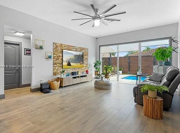 Excellent opportunity! Completely renovated 3-bedroom, 2-bathroom home with a spacious driveway and a one-car garage. It features a bonnus room ideal for an office or guest room. High-quality laminate flooring throughout, a super-spacious kitchen with a large breakfast bar, all stainless steel appliances, a full-size washer and dryer, new A/C in 2025, a complete set of window shutters, and a spacious patio with side access for a boat or trailer. Enjoy a beautiful pool with a marble deck and a barbecue area with a pergola, ideal for family gatherings. Conveniently located near top-rated schools and with easy access to major highways. Don't miss the opportunity to make this incredible house your new home! ***one of the few houses with a pool***