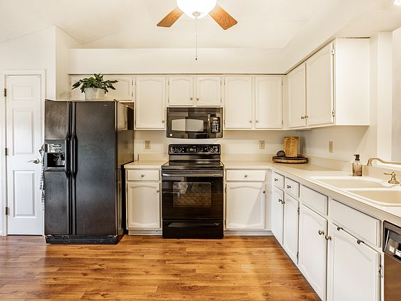 Enclosed porchPrimary suiteDouble vanityVaulted ceilingsEasy-to-maintain backyardSpacious kitchenFresh paint