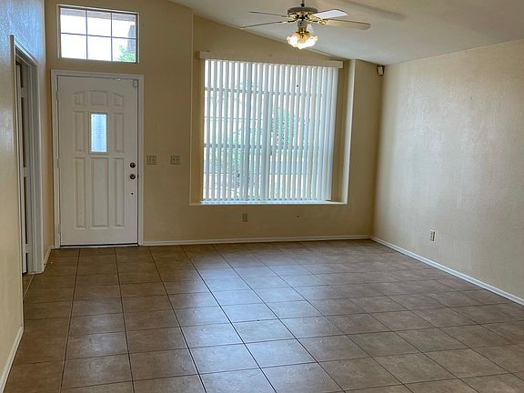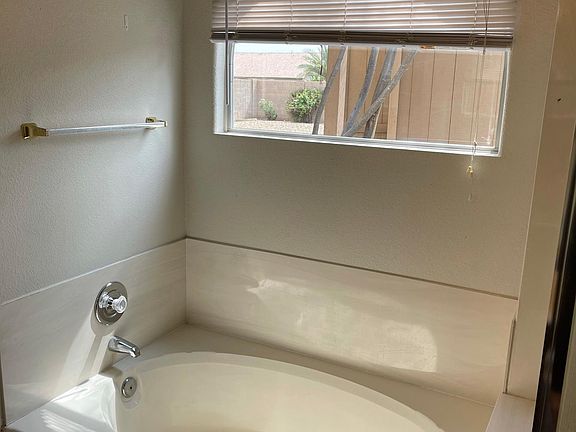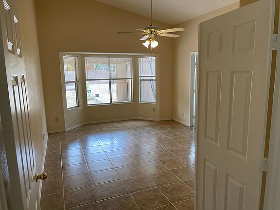 Large covered patio, 2.5 car garage, auto-watering system front and back with desert landscaping, site-built shed, bay window in master bedroom and kitchen, separate tub and shower in master bath and dual sinks, kitchen island with breakfast bar, separate family room and living room, 3 bedrooms plus den with French doors that could close off to form a 4th bedroom. Price includes landscaping done by professional landscaper. Tenant gets to enjoy a beautiful yard without having to take care of it.