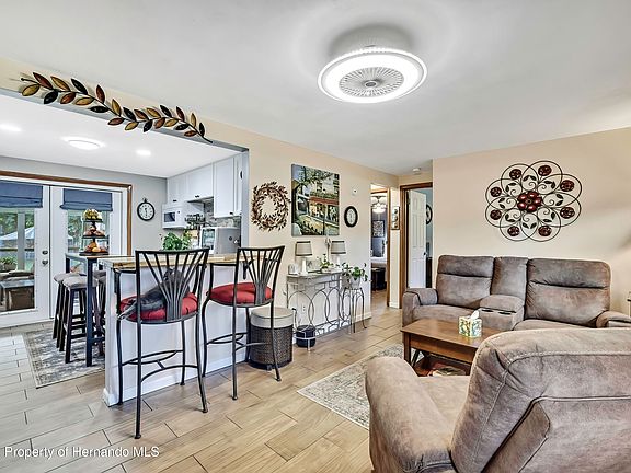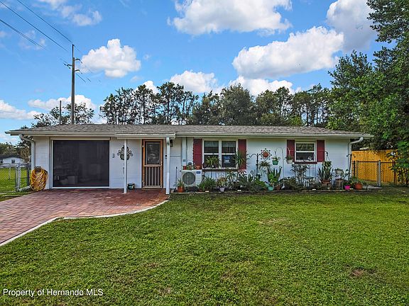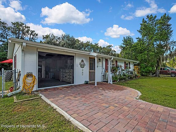 Welcome to this delightful 2-bedroom, 1-bathroom home located in the vibrant community of Floral City, Florida. This inviting property has been thoroughly updated, featuring a new roof, septic system, and air conditioning, all installed in 2021, which promises a hassle-free living experience. Inside, you will find a newly designed kitchen equipped with soft-close cabinets, butcher block countertops, newer refrigerator w/reverse osmosis, new disposal, wood-look plank tile throughout, alongside a modernized bathroom that boasts a new walk-in shower, completed in 2025. Recent enhancements, also from 2024/2025, include an impressive 100 feet of stockade fencing, additional chain link fencing around the property, a motorized gate with ghost remote, a paver driveway, a motorized garage screen, utility sink in garage, front screen door and electric setup with lights and outlets in both the shed and chicken coop. The screened lanai offers a serene view of the beautiful private backyard, which features a newer shed, chicken coop, and raised garden beds. The addition of a new gutter system and beautifully landscaped yard further enhances the home's functionality and curb appeal. For those into Nature-friendly outdoor recreation like birding, boating, picnicking, canoeing, hiking, fishing, inline skating, bicycling, hunting, camping and equestrian pursuits, you will find miles and miles of trails at the nearby Flying Eagle Wildlife Park, Ft. Cooper State Park and the Withlacoochee State Forest Park. Seize the opportunity to make this charming residence your own—contact me today to schedule a viewing.