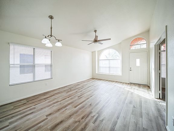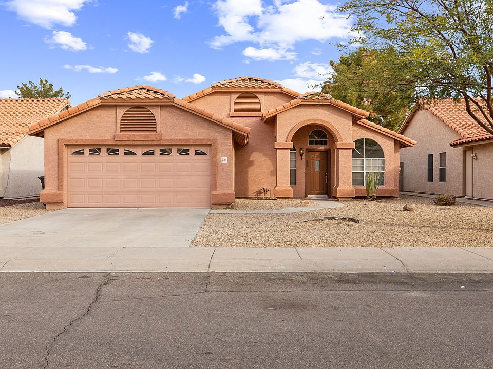 This 4 Bedroom 2 Bath single family home in the Shavano development has all the upgrade extras you are looking for: Separate Family Room and Living Room, Indoor Laundry Room, Formal Dining Area plus a Kitchen Nook eating area, Vaulted Ceilings throughout the house, Bay Windows, Ceiling Fans, 2 Car Attached Garage with Opener, Tile Roof, Patio with Cover, and Back Yard with Block Fencing. All New Flooring with Carpet and Luxury Vinyl Plank. Fresh Paint Throughout. This home is in the top rated Peoria School District. Great Location as well, just north of Thunderbird within walking distance of Cenntenial High School. Home is on the north side of Boca Raton and does not back to Thunderbird. TENANT IS RESPONSIBLE FOR: Electric, Gas, Water, Sewer, Trash and Lawn Care $39.95 Monthly charge for RBP (Resident Benefits Package) $250 One-time Setup Fee