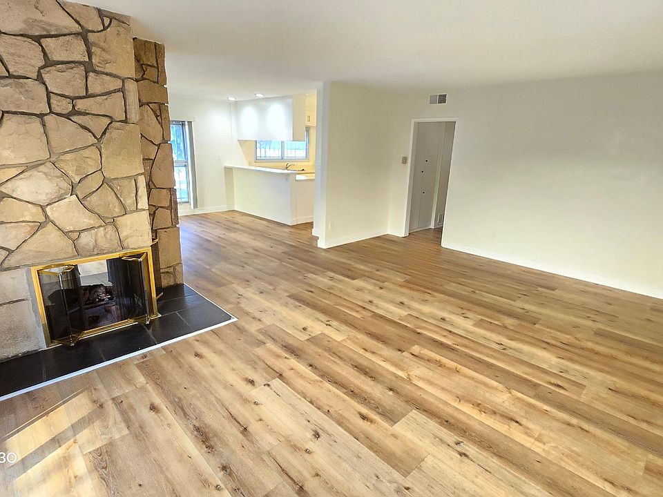 Viewings are Simple, and Available Daily! (6am-8pm, 7 days) Just TXT message us ahead of time to coordinate (Phone number in Blue under "Listed By" as you scroll down on Zillow)... Spacious Lower unit, perched alightly above street level with parking garage out back. Great light thrughout with big windows. Wood floor throughout. Clean White Kitchen with Stone counters and Stainless Steel Stove included. BRING YOUR FRIDGE. Large Patio off dining room is gated and private. Tons of cabinet and closet space for storage. Large bedroom with space for a king size. Lots of natural light with his/hers closets.. 1 parking space included at Special Bundle Price (See "Special Offers" tap on Zillow for details) - Great location on quiet street behind private School. NO PETS! (Service Dogs and Emotional Support Animals are Welcomed!) Shared Laundry Facility within the complex. 1 year lease. Tenant pays Utilities. $3,075 security deposit. 1 parking space available and included at special bundle price. All applicants must have credit established and in good standing in order to qualify. Each must provide most recent 30 days paystubs to prove that monthly household combined gross income is at least 3X the rent amount.