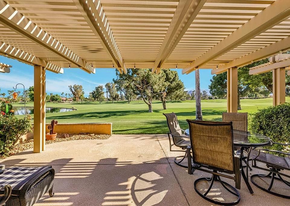 Private balcony deckMature treesTranquil water featureFour poolsBrand-new dishwasherSanta rosa mountainsEn suite bath