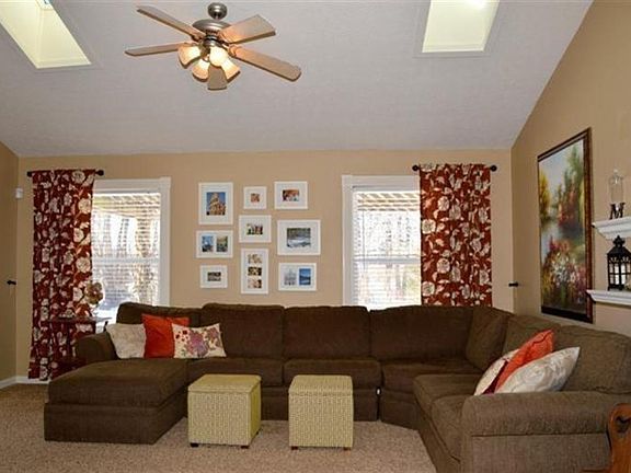 Charming ranch w/brick front, covered frontporch, backs up to trees, finished lower level w/laundry & study. 40x12 Pergola over stamped concrete patio, closet systems, open floor plan w/cathedral ceiling, 2 skylights. Community has walking paths, pool, clubhouse with fitness room, tennis courts, fishing pond. HOA only $50/mo. Qualifies for USDA financing.