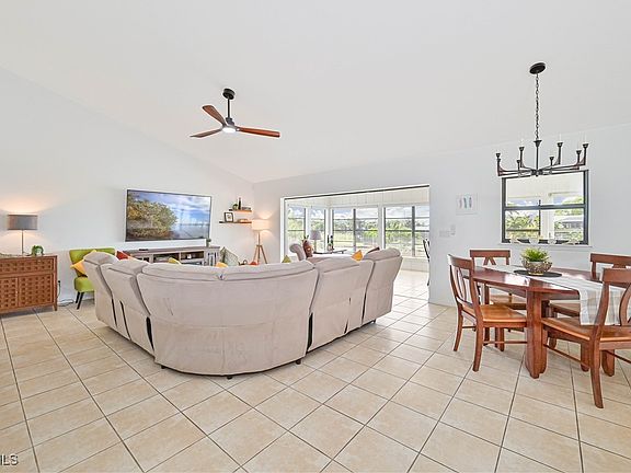 Enjoy island tranquility and stunning water views from this beautifully maintained 3-bedroom, 3-bath lakehouse in the peaceful Alden Pines community of Bokeelia. Overlooking a large lake with sweeping panoramic views, this home offers a perfect blend of comfort and island charm. The spacious open floor plan features bright living areas, a well-appointed kitchen with cooktop island, and a split-bedroom layout for added privacy. The primary suite includes dual walk-in closets, an en-suite bath, and a sunroom showcasing serene lake vistas. Step outside to a private southern-exposure pool surrounded by a screened lanai, ideal for relaxing or entertaining. Additional highlights include a metal roof, two new A/C units, vinyl siding, and a lower-level concrete pad perfect for golf-cart parking or outdoor space. Nestled near Pine Island's marinas, restaurants, and nature preserves, this home is offered mid-November 2025 through April 2026. Pets allowed upon approval. No smoking; taxes, and cleaning fee apply.