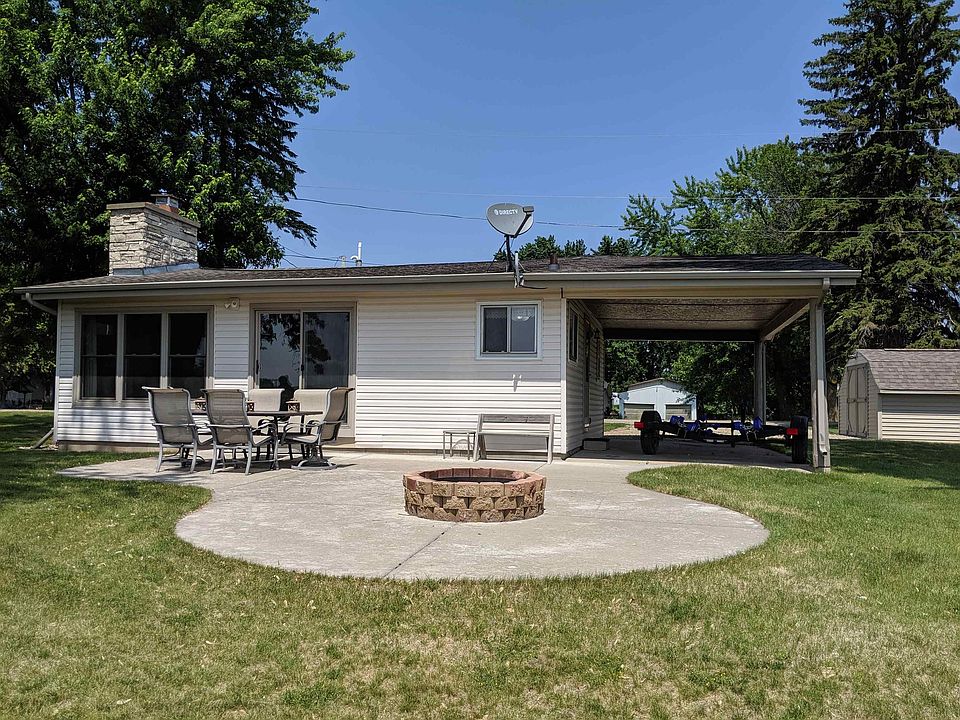 Unique waterfront property with channel and Lake Poygan/Boom Bay frontage on an island with regular road access to it. Open floor plan regarding kitchen, dining and living areas. 2 bed, 1 bath, central air, beautiful stone wood burning fireplace, cool beamed vaulted ceilings. Car port, shed and newer boathouse/garage with lift. concrete patio and firepit. TURNKEY!