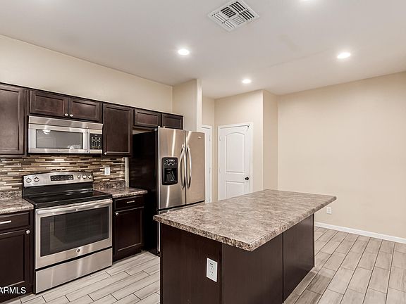 This isn't just a house, it's the kind of place that instantly feels like home. This 3 bedroom, 2.5 bathroom home is as easy to love as it is to live in. The kitchen is a true highlight including all appliances where you can enjoy late-night snacks to your next taco Tuesday. With the open floor plan you'll enjoy a comfortable living space that's perfect for movie nights or game days. Just off the living space, step out to your private, low-maintenance patio, the perfect setup for grilling, relaxing, or catching a quiet Arizona sunset. Upstairs, you'll love the convenience of the laundry room complete with washer, dryer and oversized pantry you'll never want to be without. The primary suite is a real retreat with a generous bedroom and bathroom featuring 2 sinks and a walk-in closet. Located in Vinsanto community, residents enjoy access to walking and biking trails, a playground, basketball courts, and a community pool. And talk about convenience you're just minutes from State Farm Stadium, Westgate Entertainment District, Banner Hospital, and easy freeway access to the 101 and I-10.