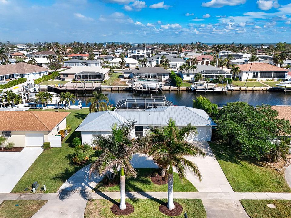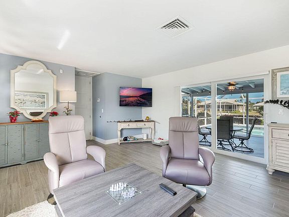 A great opportunity to own a waterfront home on Marco Island. This charming fully furnished residence has been beautifully updated with a classic coastal ambience and is move-in ready. Wood-like tile floors throughout for easy maintenance. Split bedroom floor plan and eat-in kitchen, custom cabinets and stainless appliances. Impact glass windows and doors. New metal roof 2021. New seawall 2021. The screened patio gives way to the pool and gorgeous water views. The seawall and dock will elevate your boating experience where the dock includes a 5,000lb boat lift. Nicely landscaped. Also available is 787 Apple Court. Buy separately or combine for your own private waterfront oasis or investment property.