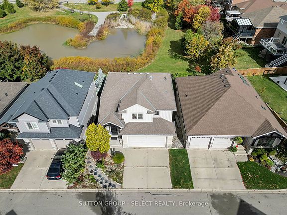 Welcome to 43-777 Apricot Drive, a beautiful 2-storey home in the desirable South West community of Byron in London, Ontario, tucked away in a private alcove of homes surrounding a peaceful pond. Enjoy low condo fees that include maintenance of common areas, visitor parking, and road upkeep. This thoughtfully designed home offers 3 bedrooms, 3 bathrooms, and a finished walk-out basement, ideal for families and professionals alike. The main level features an open, inviting layout with abundant natural light and access to a deck overlooking the tranquil pond-perfect for morning coffee or evening entertaining. Upstairs, the spacious primary suite boasts a walk-in closet with built-ins and a luxurious ensuite complete with double sinks, a soaker tub, and a stand-up shower, while the two additional bedrooms share a convenient 4-piece Jack and Jill ensuite bathroom. The finished walk-out lower level provides versatile space for a family room, office, or recreation room with a built-in bar area and direct access to the backyard. The front and back gardens are beautifully landscaped with native plantings that attract butterflies and wildlife, and can easily be converted to a traditional grass lawn if preferred. Additional highlights include a double car garage, serene natural surroundings, and proximity to all the amenities Byron has to offer, plus quick access to major highways-combining comfort, convenience, and a touch of nature in one desirable package.