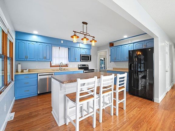 This home is nestled on a quiet beautiful 0.68 acre lot near Cedar Bend Park that offers you a serene wooded setting while still being close to town. This newly painted home and garage gives a new fresh modern look to this 4 bedrooms, 2 bath, ranch-style home. It features an open living room and newly painted kitchen cabinets with new hardware, and has a charming island with seating. There are 3 bedrooms on the main floor with an updated full bathroom. The renovated lower level is nice and bright and includes a spacious family room, a 4th bedroom with egress window, and an additional room for an office or exercise space. There is also a laundry/bathroom combo with closet space and a utility/storage room. This home has just been professionally cleaned, so it is move-in ready! In the backyard, you can relax, grill or take in the beautiful scenery from the deck. There is plenty of room to run & play and mature trees for shade and a garden. A new roof was installed on the home, as well as the garage, in 2025. Outside you will love the spacious 3-stall detached garage, providing plenty of room for vehicles, storage, or a workshop. This home combines modern updates with solid construction. Don't miss your chance to own a move-in ready home in a desirable neighborhood! This property is a MUST-SEE and won't last long!!