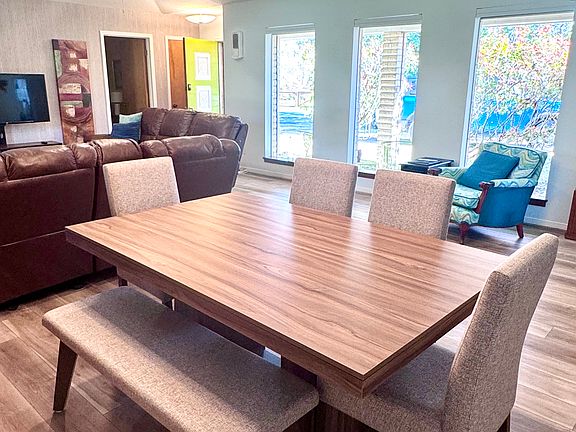 Great room: - Spacious living/dining combination - Has a beautiful stone gas-powered wood-burning fireplace. - Comfortable, cushy seating for six - Large-screen smartTV - High-speed internet wifi - Spectrum cable - Roku box for streaming services - Dining table seats 6 - Cozy reading nook - 2 ceiling fans - Coat closet