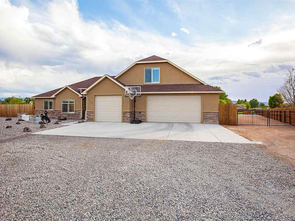Welcome home to Greystone Estates, a prestigious north Grand Junction CO area community! Bring all the toys to this 1+ acre lot with plenty of parking. Spacious living in this bright and delightful 5 bedroom (or 4 plus office) home, large living area with gas log fireplace, gracious kitchen with granite countertops and stainless steel appliances, vaulted ceiling, 3 car garage with ample storage space and more! Master has private bath with tub and shower and dual sinks. Tile and granite throughout! Enjoy warm summer evenings on the back patio overlooking plenty of lush green grass and a water retention pond, all with views of the Colorado National Monument. Get inside and experience this beautiful home!