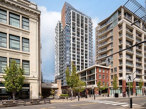 Hudson Place One stands as one of downtown Victoria’s premier addresses, celebrated for its striking architecture, refined interiors & an impressive array of amenities including concierge service, a state of the art gym, yoga studio, sauna, guest suite, hobby & games rooms, an elegant residents lounge, study areas, dog run & a beautifully landscaped courtyard. Perched on the 14th floor, this bright two bedroom home captures ocean, city & mountain views. The designer kitchen features a generous quartz island, integrated BOSCH appliances, a gas cooktop & sleek full height backsplashes. The spa inspired bathroom offers heated flooring, rain head & wand fixtures & motion activated lighting. The serene primary bedroom has its own southeast facing balcony, with a second balcony extending from the living area. Two secure underground parking stalls complete this exceptional offering. Pet and rental friendly. A prime location moments from theatres, dining, shopping, and everyday essentials.