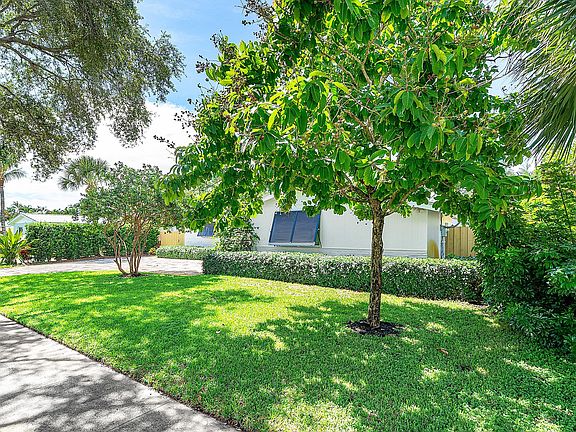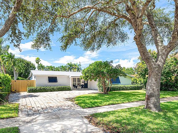 Coastal living in the Village of North Palm Beach! This updated 4-bed, 2-bath single-story home offers an easy indoor-outdoor lifestyle. A wide paver drive and shady oak canopy welcome you to a bright, open living area that flows to a private tropical backyard. Enjoy a free-form pool + raised spa, expansive paver patio, and lush palms--perfect for relaxing or entertaining. The light exterior palette, metal-look roofline, and blue shutters give timeless curb appeal, while a fenced yard keeps pets and play secure. Inside, large windows bring in natural light; a split-bedroom layout provides flexibility for guests or a home office. Home has a wonderful floorplan with 2 living spaces, dining area, and has additional storage/workshop area accesible from the exterior. One-car garage plus One-car garage plus extra driveway parking. Moments to beaches, marinas, golf, dining, and A-rated area amenities. No HOA and a premier North Palm Beach location.
