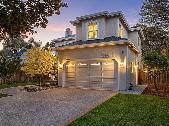 Built in 2001, this beautiful, recently updated home blends timeless architecture with modern comfort. All new kitchen appliances, designer lighting, wide-plank oak floors, interior and exterior paint, roof, plus new furnaces and heat pumps in 2023. Ideally located one block from Midtown shops and cafes, the home offers classic curb appeal with a columned portico, manicured lawn and graceful Japanese maples. The two-level floor plan features 5 bedrooms and 3 baths including a main-level suite ideal for guests or a home office. The formal living and dining rooms create an inviting setting for entertaining, enhanced by crown molding and a cozy gas fireplace. The open-concept kitchen and family room form the heart of the home with a skylit cathedral ceiling, granite counters, breakfast bar and direct access to the serene backyard. Upstairs, the primary suite provides a peaceful retreat with walk-in closet, skylit marble bath featuring jetted tub and separate shower. Additional highlights include Nest thermostats, dual-zone climate control, concealed laundry and attached 2-car garage. The private rear yard completes the setting with a stone patio, lawn, tranquil waterfall, pond, flourishing herb, vegetable & fruit gardens all within the highly acclaimed Palo Alto school district.