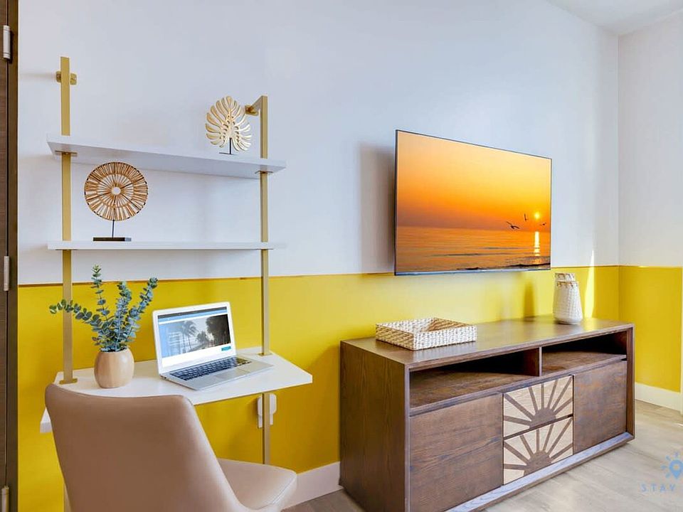Steps from the legendary Hollywood Boardwalk, this modern condo resort offers a studio with a king-size bed. The rooftop infinity pool, hot tub, gym, and sundeck complete the experience for an amazing vacation. No car is needed to enjoy the beautiful beach, bars, live music events, and wonderful restaurants, all within walking distance.