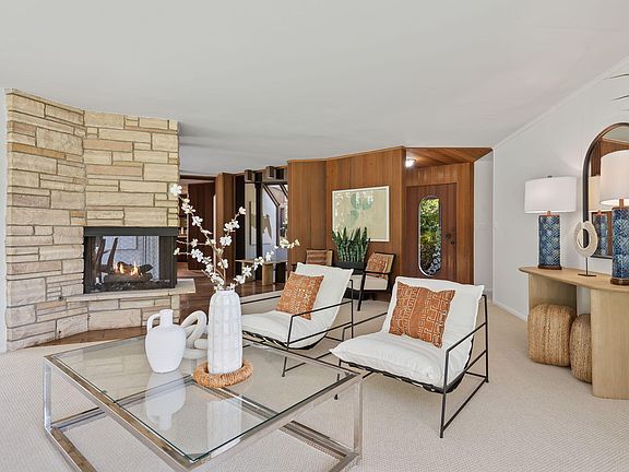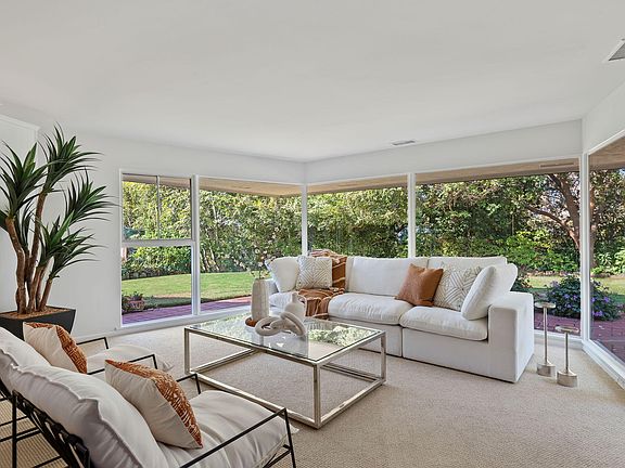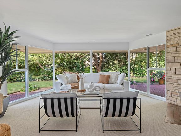Don't miss this unique opportunity to own a mid-century modern, Paul Greene home in the desirable San Roque neighborhood of Santa Barbara. Nestled in a secluded and tranquil setting on just over half an acre and accessed via a shared private drive, this spacious residence offers 2,323 square feet of thoughtfully designed living space. The home features three bedrooms, two bathrooms, and a two-car garage, reflecting the renowned architect's distinctive style with room for your personal touches. The inviting living room showcases a striking stone fireplace, exquisite wood details, and floor-to-ceiling windows that provide 180-degree views of the mature landscaping. A formal dining room, enhanced by skylights, is bathed in natural light and boasts beautiful hardwood floors. The open-concept kitchen flows seamlessly into the spacious family room, which features open beam vaulted ceilings, a second fireplace, and sliding doors that lead to an attached outdoor deck.