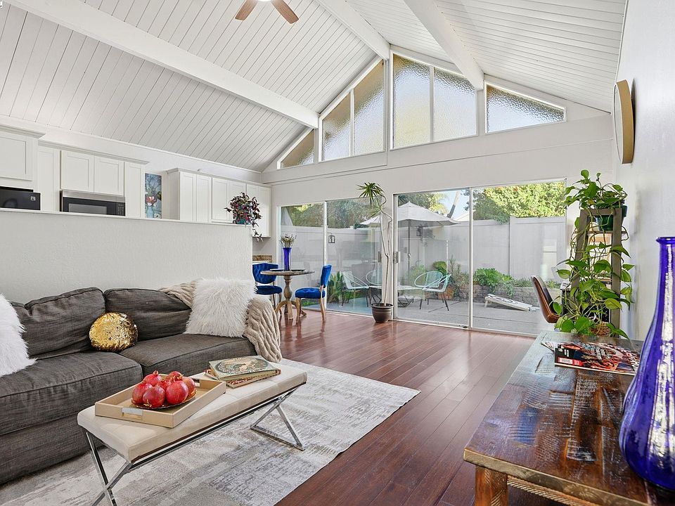 You won't want to miss this beautifully updated 2-bedroom, 1.5-bath end-unit townhome, where modern elegance meets everyday convenience. Soaring vaulted ceilings with a new ceiling fan and fresh paint create an airy, inviting atmosphere throughout. The stunning new bathroom features a sleek quartz countertop vanity and a luxurious new shower, while the half-bath boasts its own updated quartz vanity. The gourmet kitchen shines with brand-new stainless steel appliances, including a stove and microwave. What sets this home apart: This is one of only two units in the entire complex with a private side yard and separate-access parking space—conveniently located directly outside the front door for effortless comings and goings. The 1-car attached garage is partially finished with a custom alcove storage nook, plus it includes a washer & dryer. Step outside to your private patio, perfect for relaxing or entertaining. Recent upgrades include a brand-new roof and newer dual-pane windows for energy efficiency and peace of mind. Perfectly located with effortless access to top-rated schools, vibrant downtown, scenic walking trails, parks, stores, and the freeway. This move-in-ready gem is a rare find—you don’t want to miss the opportunity to make it yours! - Parking Space 777
