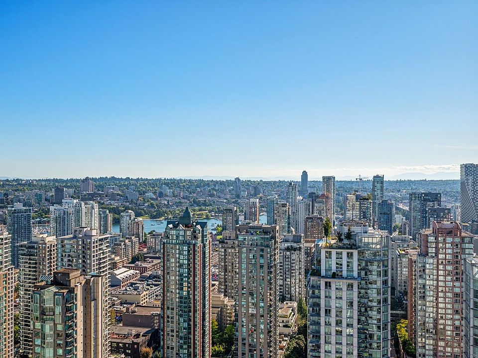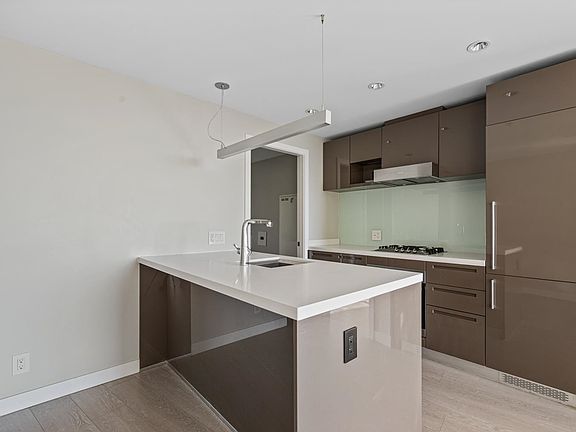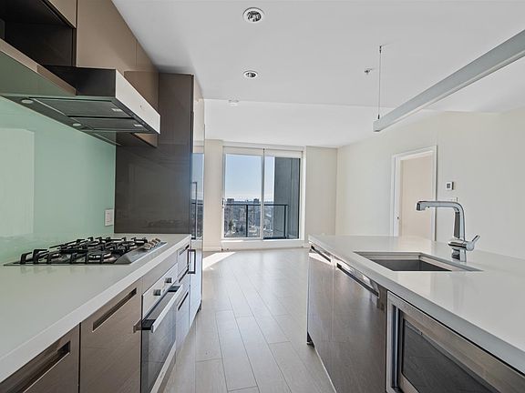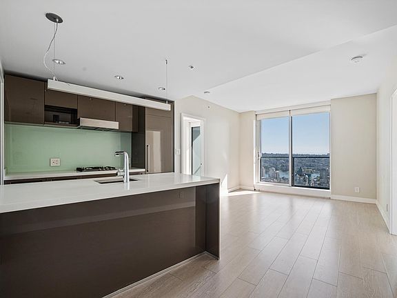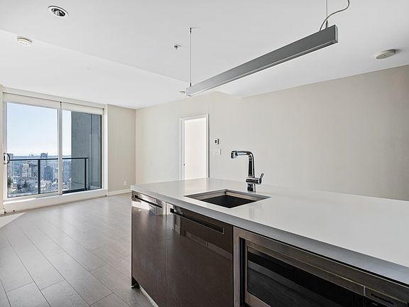 Experience sophisticated urban living at its finest in this stunning upper floor southwest-facing suite at TELUS Garden by Westbank. This bright and spacious 2-bedroom plus flex unit offers breathtaking panoramic views of the city skyline, False Creek, and English Bay from every angle. Enjoy beautiful sunsets from your large covered balcony, accessible from both the living room and the primary bedroom. The gourmet kitchen is fully equipped with a premium Miele appliance package, sleek quartz countertops, and an elegant glass backsplash perfect for home chefs and entertainers alike. Brand new wide-plank laminate flooring flows seamlessly throughout the suite, complementing the modern design.