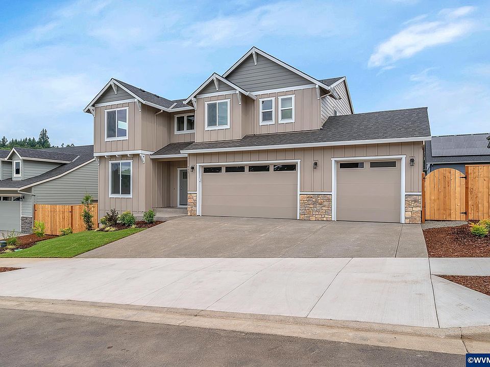 Step into style and comfort in this stunning 5-bedroom, 3-bath new construction home in sought-after Pioneer Village. Offering 2,423 sq ft of modern living, it features an open-concept main level with a spacious kitchen, gas appliances, and large island. Enjoy the covered back deck year-round. The primary suite boasts vaulted ceilings, a walk-in closet, and spa-like bath. Includes a main-level flex bedroom and 3-car garage. Listing agent related to seller.