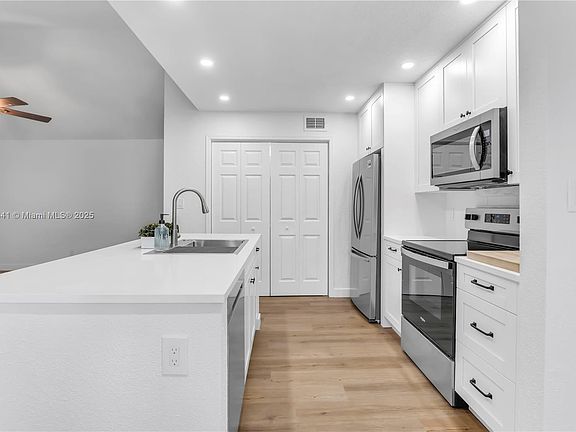 Stunning fully remodeled 1-bedroom, 1-bathroom residence featuring tall ceilings, brand-new flooring throughout, a sleek kitchen with shaker cabinets and stainless steel appliances, and a spacious primary suite with a large private balcony and an oversized closet. The home also includes an updated bathroom, ample storage, and the convenience of an in-unit washer and dryer. Residents enjoy access to premium community amenities including a sparkling pool, state-of-the-art fitness center, and clubhouse, offering the perfect blend of comfort, style, and convenience.