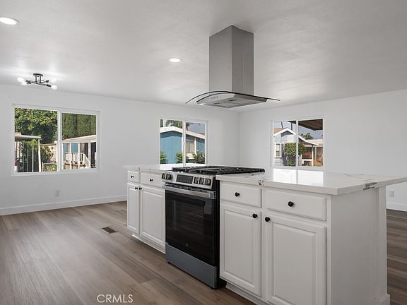 Completely renovated from the inside out, the home was taken down to the studs and rebuilt with all-new drywall, ceilings, lighting, bathroom vanities, counters, mirrors, and fixtures. The kitchen boasts a spacious island with seating, refinished cabinets, updated countertops, sink, and stove. Additional upgrades include new dual pane windows, fresh interior and exterior paint, and updated finishes throughout—creating a like-new home in a charming park.