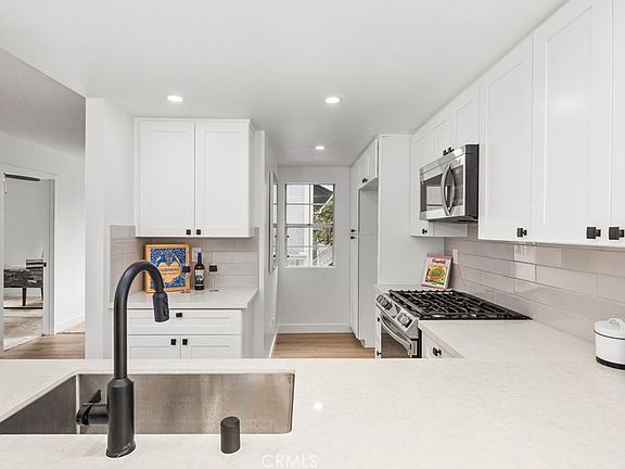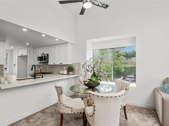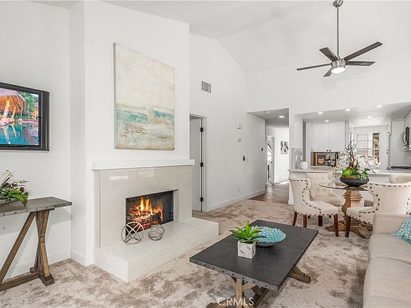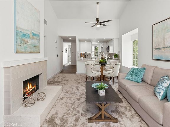 Highly Upgraded 3 bedroom, 2 bath, end unit, Upper Level condo located in the desirable Stone Harbor community of La Habra. A single car garage and one additional assigned space are included! This home is nestled in a quiet and secluded location within the community. The spacious living room features vaulted ceilings, custom designed fireplace, a charming window seat and attached rear private balcony. Your open concept kitchen has been fully renovated to include new Quartz countertops, new stainless steel appliances, new subway tile backsplash, new white shaker cabinets and large breakfast bar open to the living room. Designer details include, new laminate wood flooring, new carpet in the living room and bedrooms, a freshly painted interior and recessed lighting. A Large laundry room located just off the kitchen is a rare feature to find. The oversized primary bedroom showcases vaulted ceilings and a completely remodeled primary bathroom with all new Quartz countertops, new white shaker cabinets, dual sinks, new modern fixtures and a walk-in closet. Two secondary bedrooms share a remodeled full bathroom on the other wing of the house. A second outdoor balcony provides excellent space, light and breezes to the guest rooms. This fantastic community offers a pool and spa. 777 Stone Harbor has everything you are looking for!