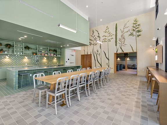- Exterior features: Adventure Zone (Children's Play Area), Artisan Kitchen and Dining Area, Bicycle storage, Bike and Onsite Storage, Built-in Shelving*, EV Charge Stations, Enjoy 75, 000+ square feet of outdoor open space, Fresh Herb Gardens, Furniture Rental Partnership with CORT, Game Room, Garden, GreenPoint Rated Platinum Certification, High Ceilings, Jacuzzi, Kitchen Island, Large Bedroom, Large Living Room, Luxurious Finishes, On-Site Maintenance, On-Site Management, Package Receiving, Pet Washing Station, Podcast Rooms, Private Balconies & Patios *, Sundeck, TV Lounge, The Study and The Studio (Co-Working Spaces), Theater