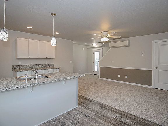 Well-maintained home in a new subdivision in White City. Perfect setup for roommates. Downstairs is one bedroom with a private full bathroom and garage. Middle level is living room and kitchen and bathroom. The third level is a master bedroom and private full bathroom and washer and dryer in hallway. Small backyard and small balcony on middle level.