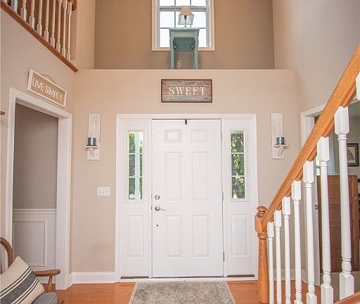 This home has everything you need! Welcome to this lovely 4 bedroom, 2.5 bath 2600 sqft colonial with 2 car attached garage sitting on 2 acres complete with a pool, pond & barn. Sitting back from the road, the porch is a cozy spot to sip your morning coffee while admiring the manicured lawn & landscaping. The front door opens to the 2-story foyer with staircase, office to the left, hallway to the living room straight ahead & formal dining room to right with beautiful wainscoting. The eat-in kitchen hosts solid oak cabinets, island, granite countertops, stainless appliances & sliding glass doors providing access to the deck. Beyond the kitchen is the laundry room, half bath with shiplap walls, & garage access. Central to the home is the living room with a gas fireplace with a shiplap accent and recessed lighting. Completing the 1st floor is the primary suite with luxurious private bath featuring a dual sink vanity, free-standing tub, glass surround shower, subway tile walls, rich wood flooring and access to the walk-in closet. The second floor holds a spacious loft serving as an additional living space, 3 ample sized bedrooms (all w/ walk-in closets) & a full bath. The unfinished basement is ready for your finishing touches & offers tons of storage space. Enjoy hosting BBQs on the back deck, along with swimming in the above ground pool or fishing in the 1/3 acre pond with 12'x16' dock. The 16'x24' barn, w/ loft space and electricity, is perfect for your hobbies or animals.