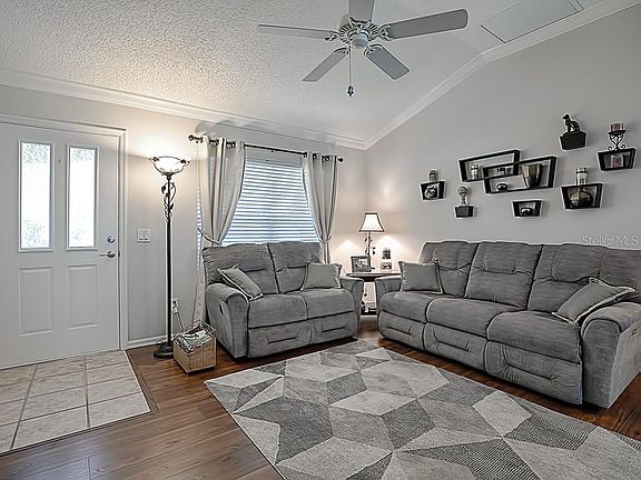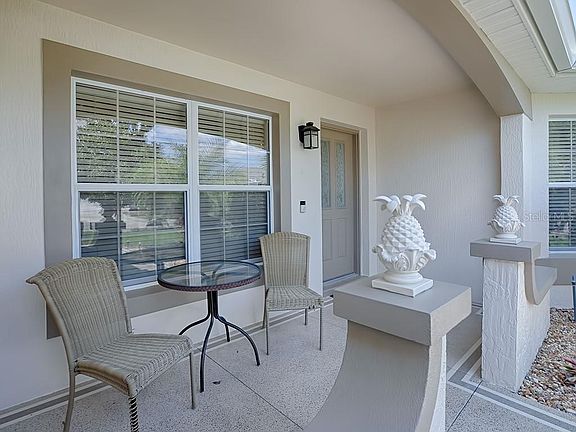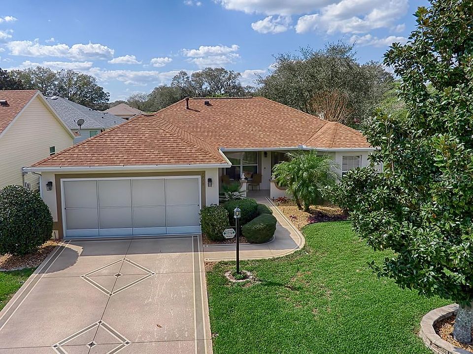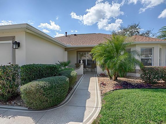 Truly BEAUTIFUL 3/2 Maple (STUCCO Bougainvillea) on a Corner Lot in Calumet Grove. NEW ROOF 2020! TANKLESS HOT WATER 2020! GORGEOUS WIDE-PLANK LAMINATE Flooring THROUGHOUT, TILE in Kitchen, Baths and Florida Room = NO Carpet! The Florida Room has DIAGONAL TILE Flooring and adds an ADDITIONAL 180 s.f. of Living Space, bringing your TOTAL LIVING SPACE to 1605 s.f.!! There is also a BIRDCAGE off the Florida Room with a HOT TUB. The Bright OPEN CONCEPT KITCHEN features QUARTZ Countertops, SUBWAY TILE Backsplash, GAS Stove, STAINLESS Appliances (Less Than 5 YEARS OLD), Bisque ARCHED-RAISED-PANEL Cabinets, PULL-OUT Shelves, RECESSED Lighting, and Some Under-Cabinet Lighting. VOLUME CEILINGS and CROWN MOLDING are the "Cherry on Top" in this Beautiful, Open GREAT ROOM. The Master Bedroom has a WALK-IN Closet and EN-SUITE Bath with GORGEOUS QUARTZ Countertops, Wood-Look TILE Flooring, and UPGRADED Walk-In Shower w/SUBWAY TILE and FRAMELESS GLASS Door. POCKET Door to Guest Rooms provides PRIVACY for your guests. BOTH Guest Rooms have Closets and Wide-Plank Laminate Flooring, and the FRONT Guest Room has BAY WINDOWS. Beautiful FURNITURE AVAILABLE SEPARATELY (Living Room LAZY BOY Furniture NEW in 2020). 2018 CLUB CAR Golf Cart AVAILABLE SEPARATELY. Exterior Painted in 2020. Indoor Laundry Room. Great location in Calumet Grove - easy in and out of The Villages. Close to Nancy Lopez Country Club, Several Pools (Adult & Family) and Mulberry Grove Rec Center. Shopping, Banking, Restaurants and the VA Center are nearby! Tax line reflects property taxes only. Bond Assessment is $443.89/year. Bond Payoff is $3,494.82. Maintenance Assessment is $547.53/year. Fire Dept. $199.91/year. Note: Square footage information is taken from the Public Record and is deemed reliable, but not guaranteed. Room and garage dimensions are approximate: buyer to verify.