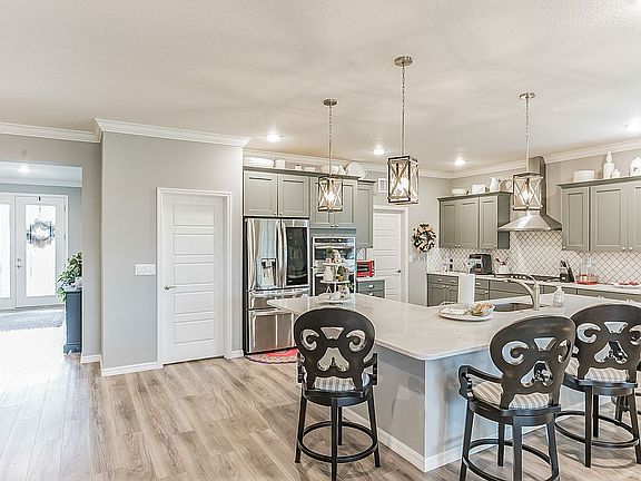 Better than new Wisteria in Indigo East, a part of On Top of the World. We will be happy to work with any agent! A few of the thousands of dollars in upgrades include: Gourmet kitchen, LVP flooring throughout, insulated garage, two master closet maid closets, completely upgraded master bath, additional lighting, 5 burner gas stove, dishwasher as well as natural gas line for grill. After construction additions of designer window treatments including plantation shutters in great room, enclosed blinds on slider, and custom drapes in bedrooms. Sunshades in lanai. Pelican water system. Air conditioned garage. Curbing on beds. Additional professional landscaping. Electric lift for garage storage. Gutters plus pop ups all four sides. Huge granite composite sink. Front railing. Retractable front screen door. Third bedroom being used as a craft room. White shaker Dream Box by Createroom.com with crown and lights, 2 side tables. Ideal for crafting or sewing. Easily converted back to bedroom if desired. Premium lot backs to grassy common area. Convenient to Fitness Center, pool and outdoor fitness area.