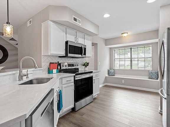 Beautiful End-Unit Condo in Prime North Raleigh Location! Live the maintenance free life-style in the desirable Cottages of Stonehenge. Features 2 spacious bedrooms, each with its own updated ensuite bath, plus a renovated powder room. LVP flooring throughout (NO carpet!). The kitchen features quartz countertops, glass tile backsplash, stainless steel appliances and tons of cabinet space. The over-sized sliding glass door brings in plenty of natural light. The owner's bathroom has a large walk-in shower and dual sinks. Enjoy one of the largest backyard spaces in the neighborhood that backs up to wooded area and has extra patio space plus functional fencing. Water heater (2020) and new AC (2025)! The Storage room is in the back of the condo. Community amenities include pool, tennis courts, clubhouse, and playground perfect for Summer activities. Top-rated schools and unbeatable location close to shopping, dining, and major roads. Great for investors who are looking for Raleigh rentals. Assigned parking in front plus visitor spaces. A must-see!