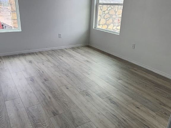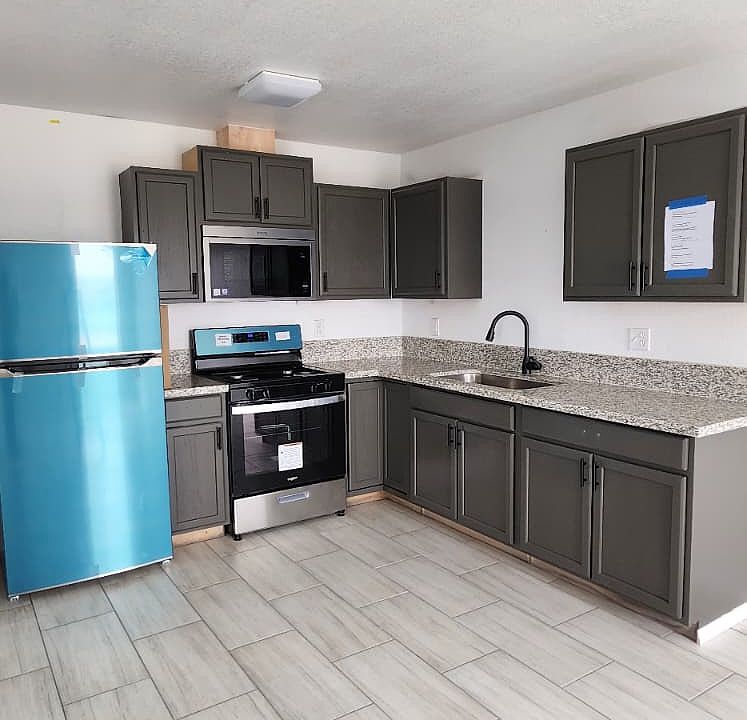 This 1,000 sq ft single-story duplex offers a well-designed layout in a quiet neighborhood. The 2-bedroom, 1-bath unit features an open-concept living area that connects seamlessly to the kitchen, creating a bright and functional space. The kitchen includes granite countertops, a full stainless steel appliance package (refrigerator, stove, and microwave), and abundant cabinet and counter space. Tile flooring is installed throughout the main living areas, with wood-laminate flooring in both bedrooms. Ceiling fans are installed in the living room and bedrooms. Additional features include refrigerated air, a tankless water heater, and hook-ups for washer and dryer. The property also includes two designated parking spaces and security cameras. Trash and water utilities included. Water and trash included. One-year lease. Designated parking in front of unit (two spaces). No pets. No smoking.