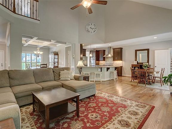 This fantastic custom built home is a must see! Situated on a perfect lot offering both privacy and wonderful open space! The interior flow is perfect for relaxing or entertaining! Master on the main! Great room with stone gas log fireplace, coffer ceilings in the dining room, kitchen with double ovens, pantry and welcome center off of 3 car garage! HUGE bonus with full bath is great multi-purpose area! Outdoor living with deck, pave patio, fenced yard and fire pit! Neighborhood play/picnic area!