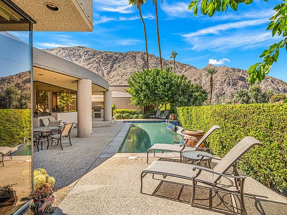 Gorgeous furnished home within prestigious Cove Pointe Circle community with easy access to Indian Wells Country Club. Breathtaking mountain views located on the 16th Fairway of the IWCC Cove Course. Home has 3723 Sq.Ft. Interior Living Space, 3 spacious Bedrooms, 3 ensuite Baths, Great Room with clerestory windows, walls of glass, large Wet Bar, Formal Dining area, 2 fireplaces, 2 car plus golf cart garage with A/C, epoxy flooring, and tons of built-in storage. Home has its own private infinity lap pool! Expanded covered patio with built-in BBQ for the best of indoor/outdoor living. Beautiful, dramatic high ceilings with awesome fairway and mountain views as you enter from the large foyer. Polished marble floors throughout, carpets in bedrooms and Great Room with elegant wood paneled ceiling, fireplace, and big flat screen tv with custom cabinetry. Palatial Formal Dining area has built-in black granite countertop buffet for wonderful entertainment. Wet Bar features granite countertops, wine cooler, bar refrigerator, and icemaker. Gourmet Kitchen presents granite countertops, two separate sinks, big Kitchen Island, and outstanding high Kitchen cabinets for abundant storage. Primary Bedroom has fabulous mountain and pool views, and exquisite marble fireplace. Primary Bath has dual walk-in closets, marble countertops, dual sinks plus large vanity, big shower, and jet tub spa. Both Guest Bedrooms have walk-in closets and striking mountain views. Large Laundry Room with deep tub sink, and storage cabinets galore.