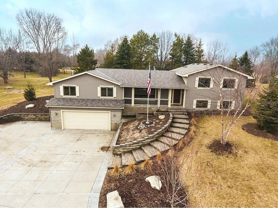 Stunning home located on 1.5 acs of privacy. Custom upgrades include: Cherry woodwork, hardwood floors, & many architectural details such as arched entryways, pillars, & crown molding. The open floorplan adds to the spacious feel. Enjoy top stainless steel appliances, marble center island, & granite countertops. Two Family Rooms-one with stone fireplace. Master Suite has changing area, His/her closet, & private bath. Huge garage is heated & has built-in cabinets/workbench & epoxy floor.