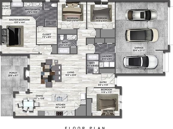- Flooring: Carpet, Ceramic Tile, Laminate, Simulated Wood