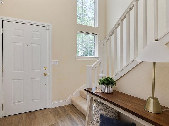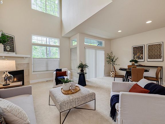 All spruced up and ready to move in! New carpet, LVP flooring and paint add to the open, light, spacious feel. The great room floor plan provides opportunity for your own unique living style. A new gas stove highlights the galley kitchen with plenty of storage and a convenient eating bar. The dining room area has a slider that opens to your own private deck with a wall of greenery. The vaulted living room has a clerestory window to let in lightand the gas fireplace adds warmth to be enjoyed in the open space. Upstairs there are two spacious bedrooms with large windows and high ceilings. The Primary bedroom has twolarge double closets and an ensuite bath. The second bath has a tub/shower. As a bonus, a loft provides space for office, hobby, or cozy sitting area. A convenient utility closet hidesthe washer and dryer, with more storage areas nearby. THe home has A/C for the coming months' comfort. Important recent improvements include a new CertainTeed roof, Hardiplank siding and Milgard windows. Guest parking is just across from the home. The privacy and location of this townhome make it special. This complex is convenient to shopping, freeways and nearby Beaverton city resources. Compare low Monthly HOA fees to other complexes. Investors…Ask about Rental options!