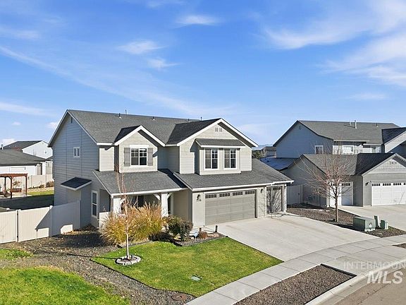 Welcome to this beautifully maintained 5 bedroom, 2.5 bathroom home tucked inside a desirable community. Sitting on a generous .25 acre lot, this property offers the perfect blend of space, comfort, and outdoor living. Step inside to an inviting living room space with plenty of natural light, and a warm, welcoming feel throughout. The spacious kitchen opens to the dining area, with a huge island with breakfast bar. A bedroom, half bath and full size laundry room can be found downstairs. Upstairs you will find 4 bedrooms thoughtfully designed for privacy and comfort with a loft space for your entertaining needs, including large primary suite with its own bathtub and walk in shower, and oversized master closet! Besides the desirable 3 car garage, the best highlight is the backyard oasis! Enjoy those Idaho summers with a beautiful pergola with a swing for relaxing, a fun above-ground pool, and plenty of room for even more entertaining and hobbies. Location highlights: 18-acre Orah Brandt Park is less than a mile away, around 10 minutes Nampa Gateway Center and Idaho Ford Center, and less than 10 minutes to Treasure Valley marketplace. Please ask for more information or a tour, this home is ready for you!